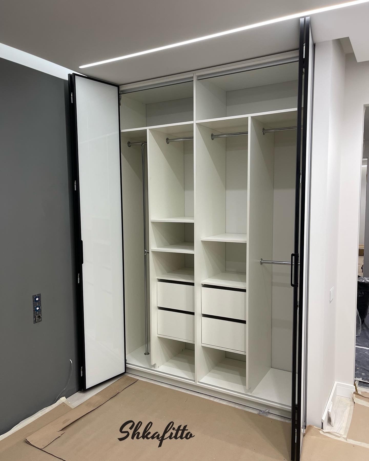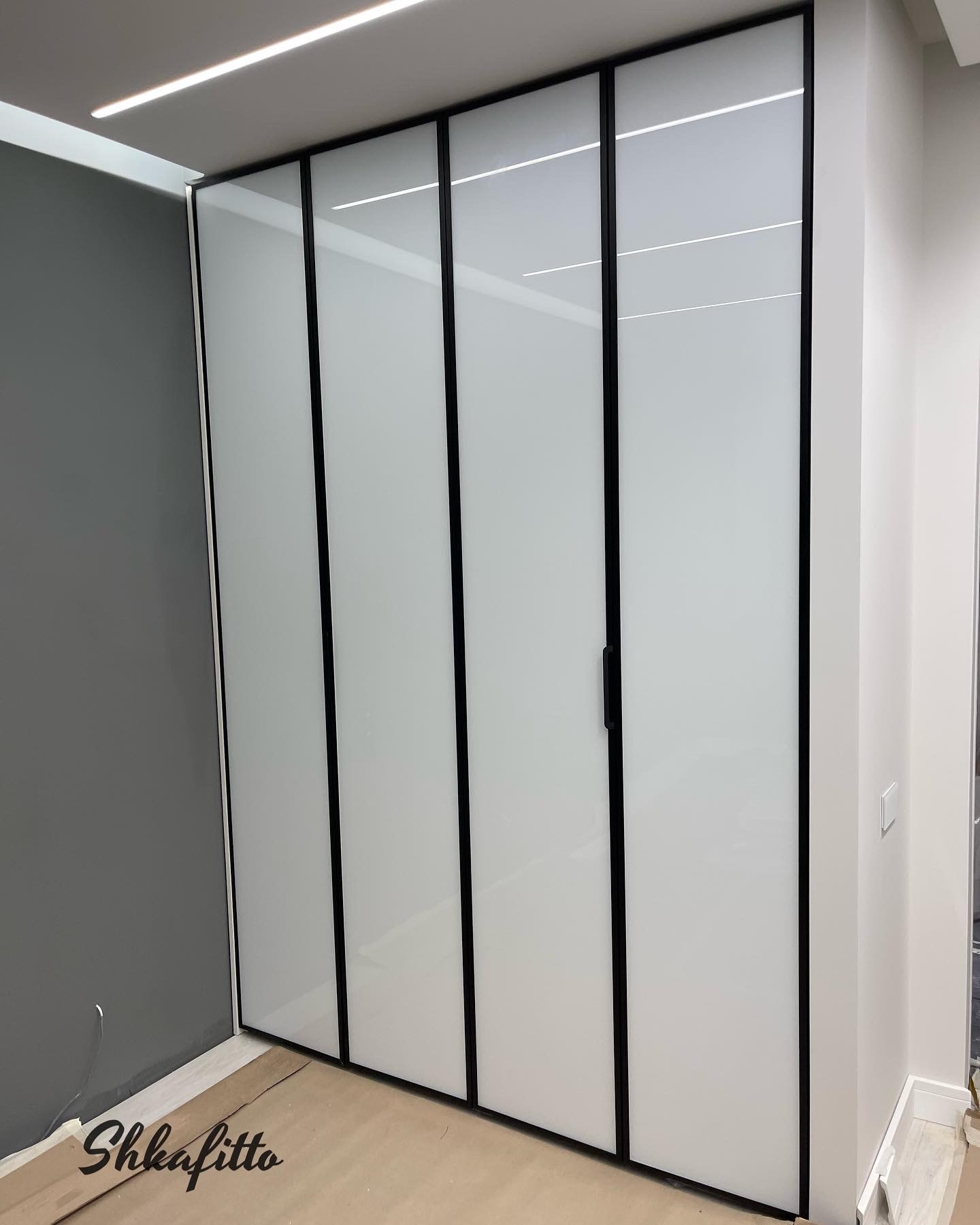 Крашенное стекло белое в черной алюминиевой рамке
