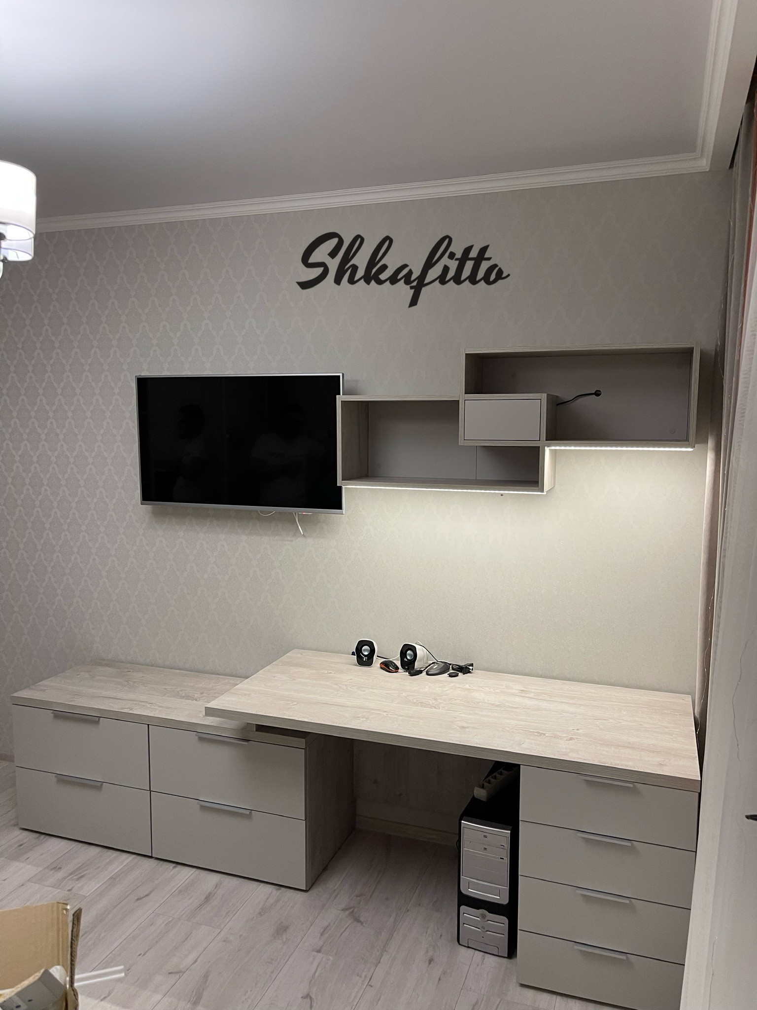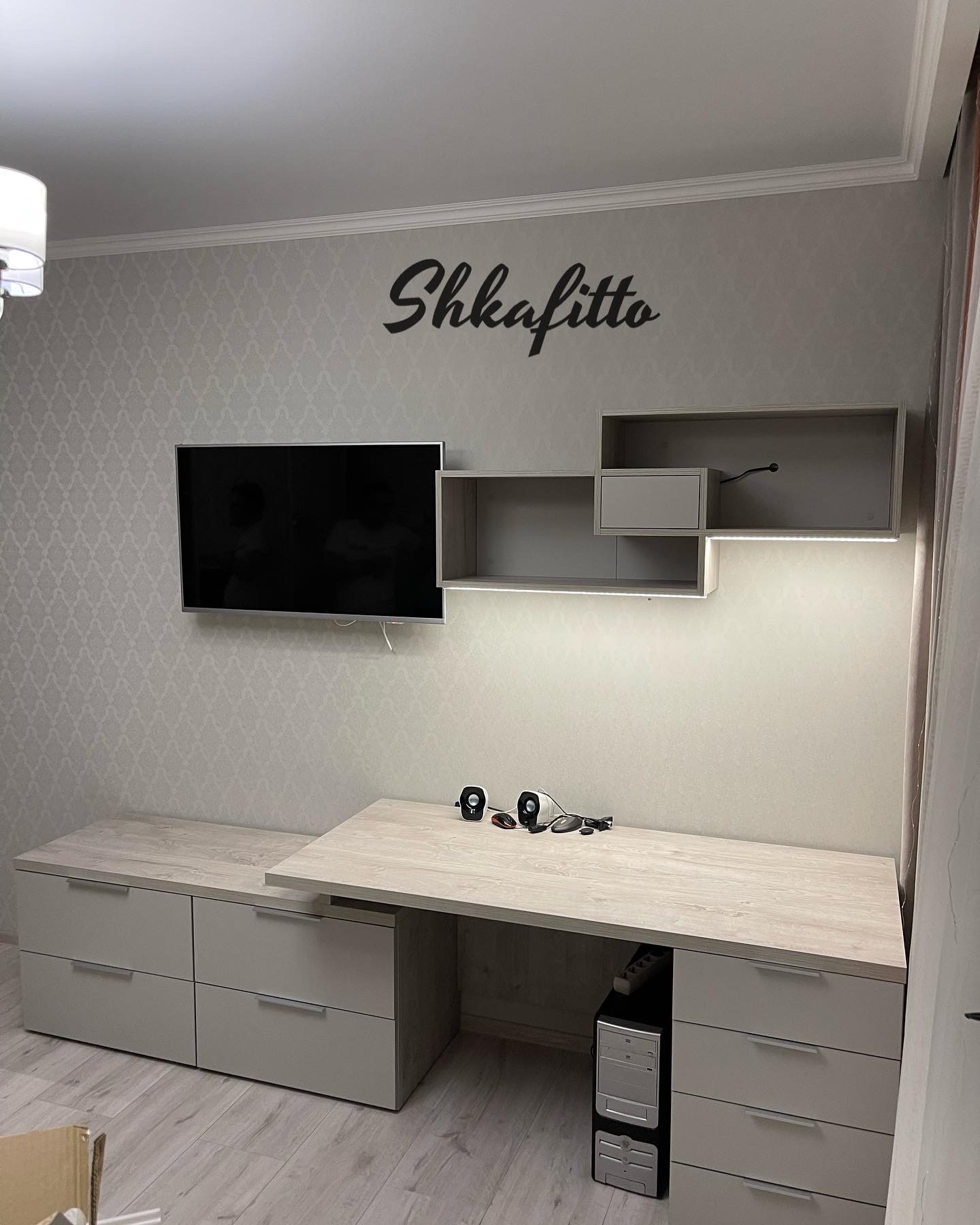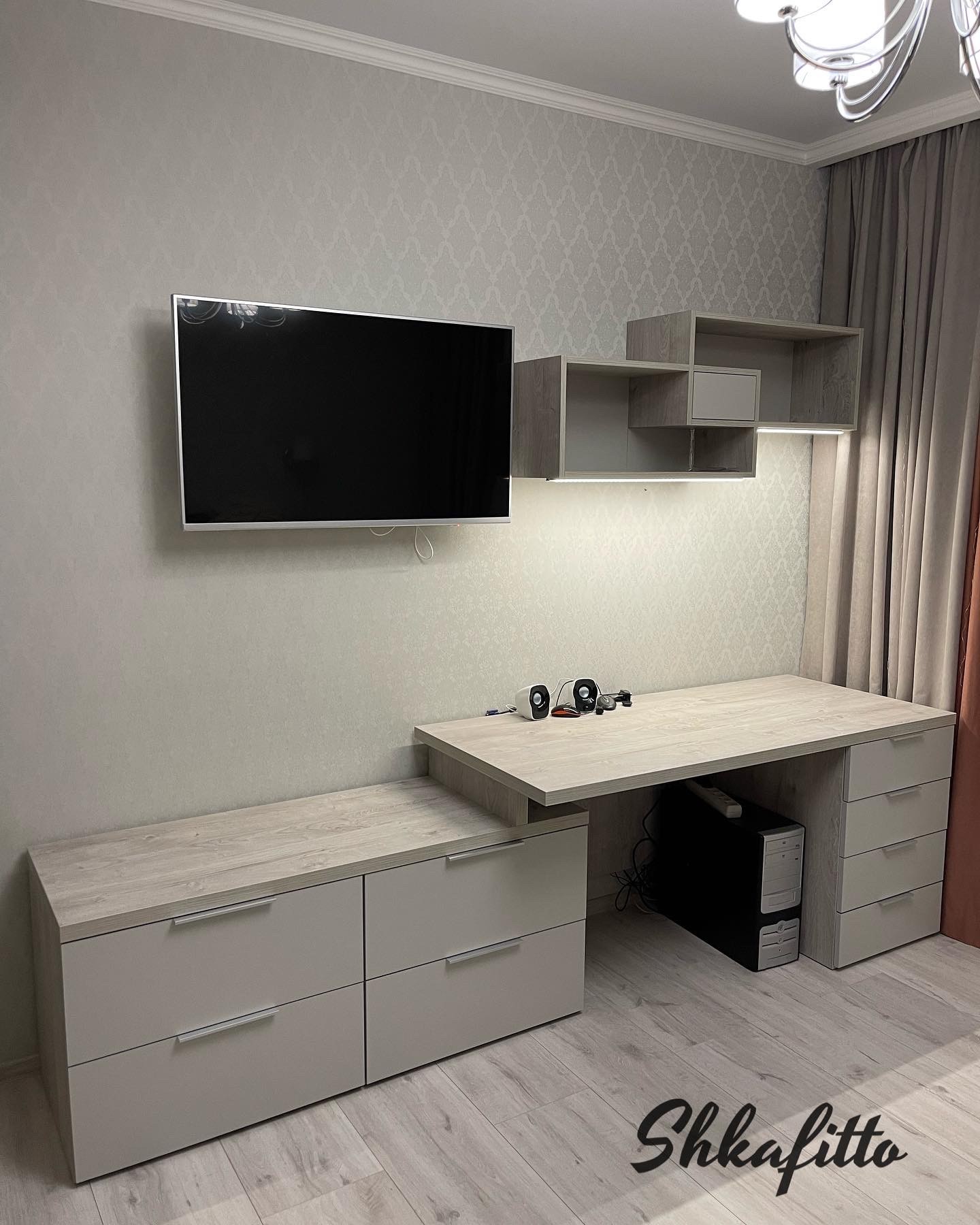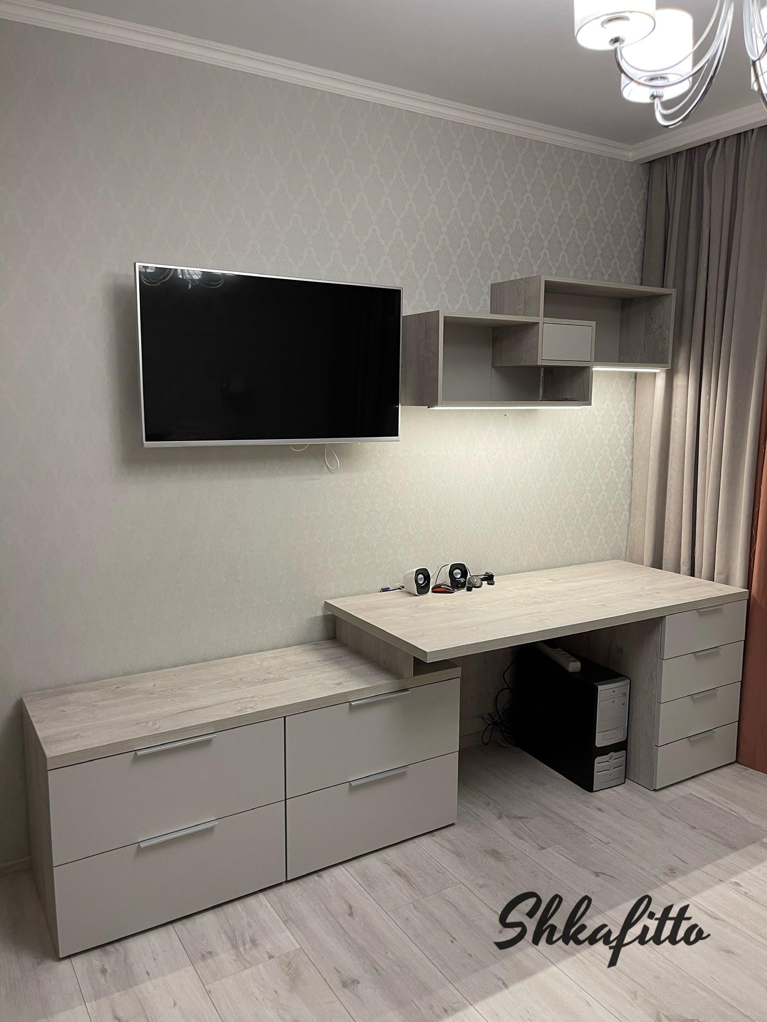 Стол вместе с комодом и подсветкой Дуб Монтерей